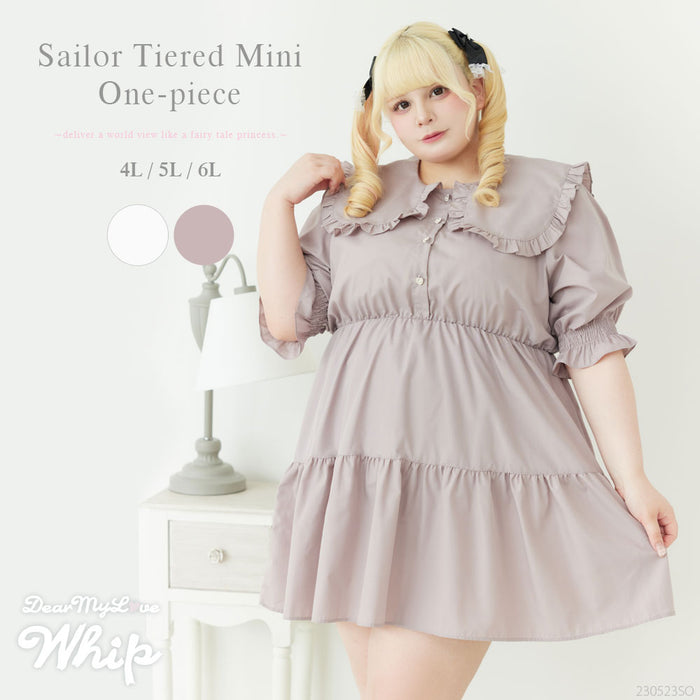 こちらは流行りの大きめ襟のワンピース。バストは140cmまであり、大きいサイズでは今季あまり出ていないミニ丈のワンピースです。