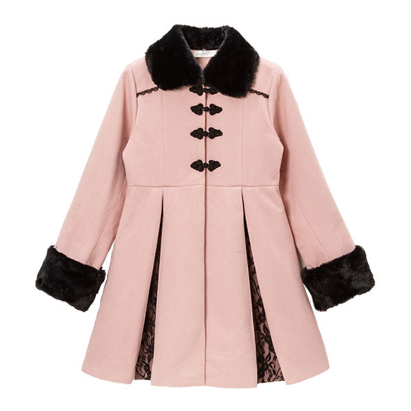 レースもあって洋風なデザインにチャイナボタンが異種混合って感じで意外にも合いますね。大きいサイズの量産型のコートを探してる人にもおすすめ。