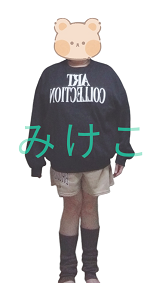 ロゴ下部分をそのままにして長めにするよりも、短めにした方がいいのはモデルさんの着画でもわかりますね。この感じで着た方が可愛いよね。もっとオーバーサイズだとより可愛いとは思うから、その内プラスサイズでも出そう。